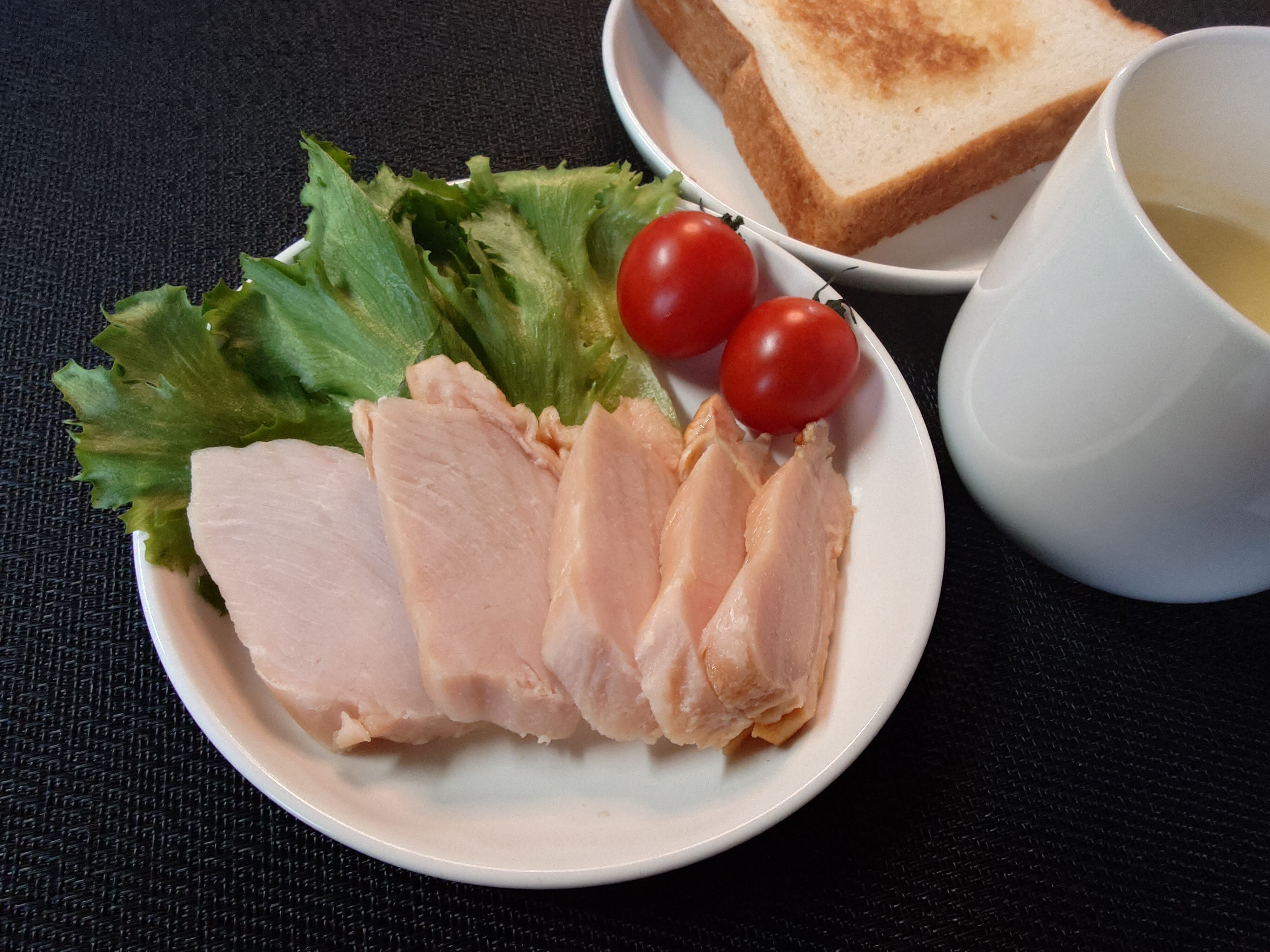 ベーコン・ハム・サラダチキンの3点セットとなります。